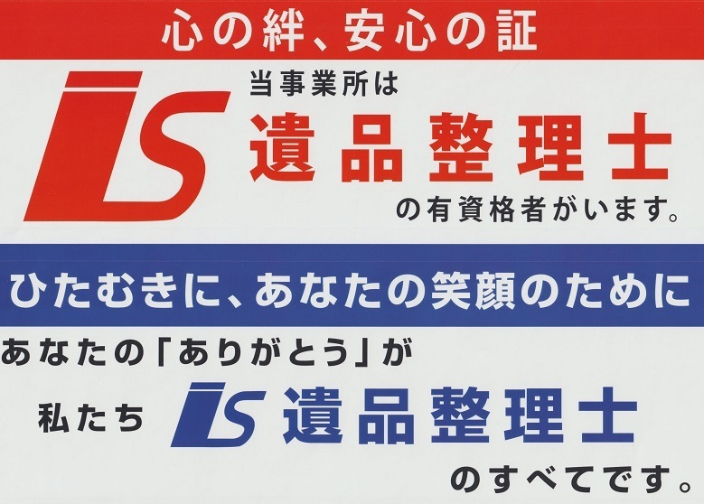 ホームサービス赤城はIS遺品整理士認定協会の優良事業所認定を頂いています。群馬でも数少ない事業所です。