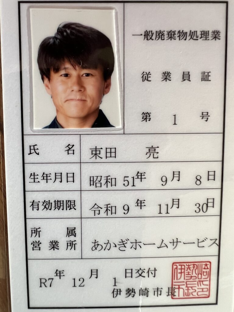 大型自動車免許証は、大型トラックなどの車両を運転するために必要な免許です。一軒家まるごとの片付けや大量の不用品回収では、大きな車両での運搬が必要になる場合があります。当社では、大型自動車免許を保有しているため、現場の規模や荷物の量に応じて、スムーズな運搬対応が可能です。